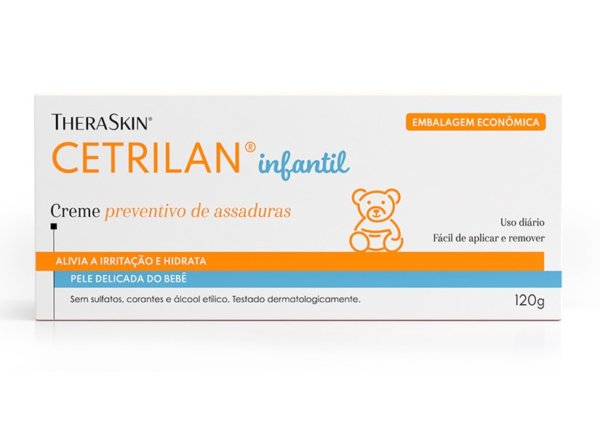 O Creme Protetor de Assaduras Cetrilan 120g é indicado para a proteção da pele do bebe contra assaduras. Sua formulação com óleo de calêndula reúne ingredientes com ação anti-inflamatória, que melhora a textura da pele, protege e acalma peles irritadas. Sua composição conta também com óleos de amêndoas doce e lanolina que proporciona ação lubrificante, facilitando ainda a remoção na troca de fraldas.