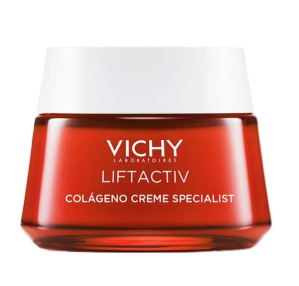 O Vichy Liftactiv Colágeno Specialist é um creme com nova fórmula que associa a Água Vulcânica Vichy a um concentrado de ativos dermatológicos (Peptídeos Colágeno Specialist, Vitamina CG e Niacinamida – Vitamina B3).