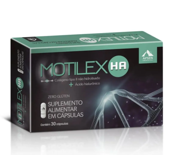 Motilex HA é um suplemento alimentar em cápsulas à base de ácido hialurônico e de colágeno tipo II não hidrolisado.