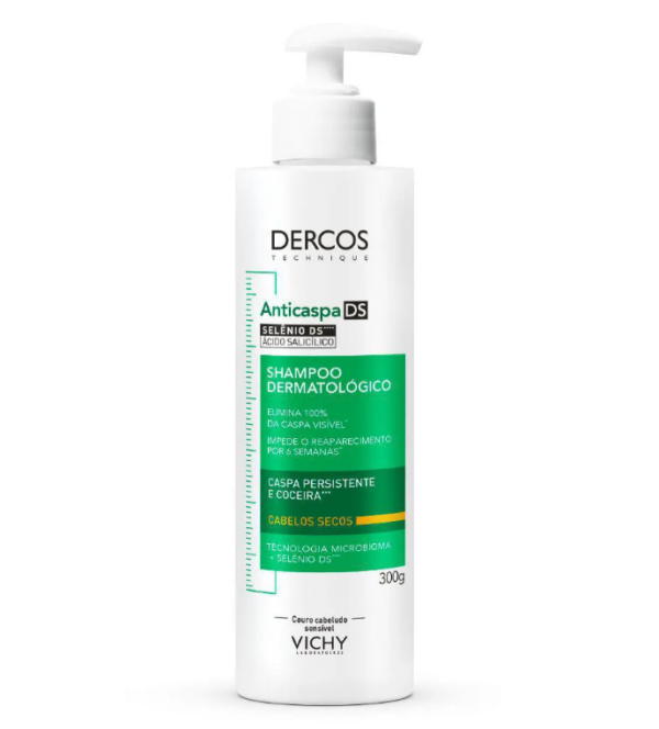 O Shampoo Vichy Dercos Anticaspa DS para Cabelos Normais a Oleosos é enriquecido com a tecnologia Microbioma com Selênio DS, que ajuda a reequilibrar o microbioma do couro cabeludo e eliminar as caspas visíveis, agindo desde a primeira aplicação e evitando a reincidência por até 6 semanas.